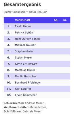 Ergebnisse Bezirksmeisterschaft Winter 2024/2025 - Herren, Samstag 25.01.2025 in Hollabrunn.